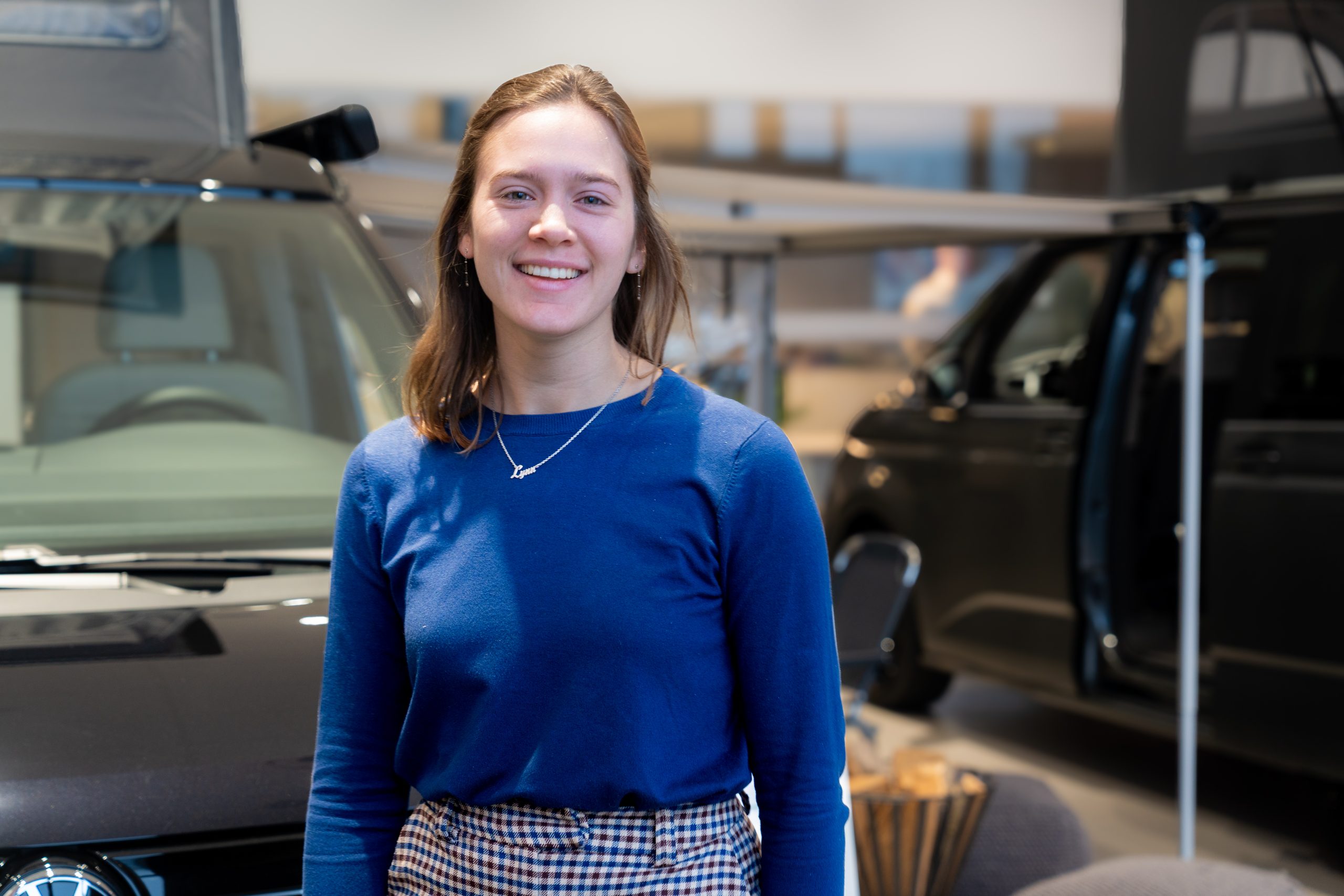 De verhuur van de Volkswagen California gebeurt via onze uitvalsbasis in Oostkamp. Lynn is daar jouw vaste aanspreekpunt voor alles wat met huren te maken heeft: van reservatie tot vertrek, en van praktische vragen tot persoonlijke tips voor onderweg.